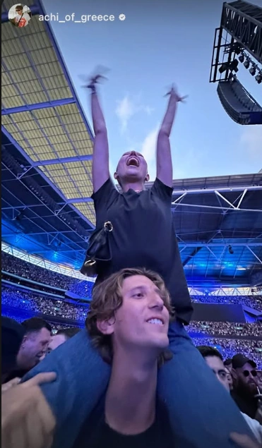 Στα στιγμιότυπα που δημοσίευσε η Ολυμπία Ντε Γκρες, ντυμένη casual με τζιν και μαύρο T-shirt, φάνηκε να απολαμβάνει κάθε στιγμή, ενώ δεν δίστασε να ανέβει στους ώμους του Οδυσσέα για καλύτερη ορατότητα.