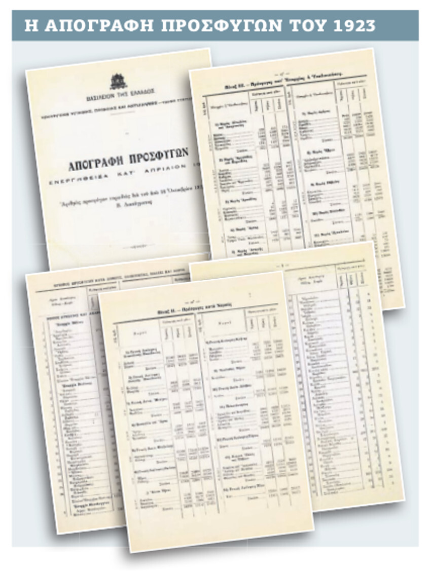 Το πρώτο δεκαήμερο του Απριλίου του 1923, με συνεργασία των υπουργείων Εσωτερικών, Εθνικής Οικονομίας, Υγιεινής, Πρόνοιας και Αντιλήψεως, διενεργήθηκε απογραφή των προσφύγων που ήρθαν στην Ελλάδα από τη Μικρά Ασία και την Ανατολική Θράκη. Τα αποτελέσματά της (αριθμός απογραφόμενων προσφύγων κατά διοικητικές περιφέρειες και οικισμούς με διάκριση κατά φύλο) δημοσιεύθηκαν στην Εφημερίδα της Κυβερνήσεως της 22ας Οκτωβρίου 1923, χωρίς, όμως, τα υπόλοιπα δημογραφικά χαρακτηριστικά που είχαν ζητηθεί.