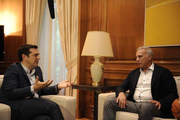 Κατά τη διάρκεια της συνάντησης, ο κ. Τσίπρας ανακοίνωσε την απόφαση της κυβέρνησης να δώσει το όνομα του Νίκου Γκάλη στο κλειστό γήπεδο του μπάσκετ στο ΟΑΚΑ.