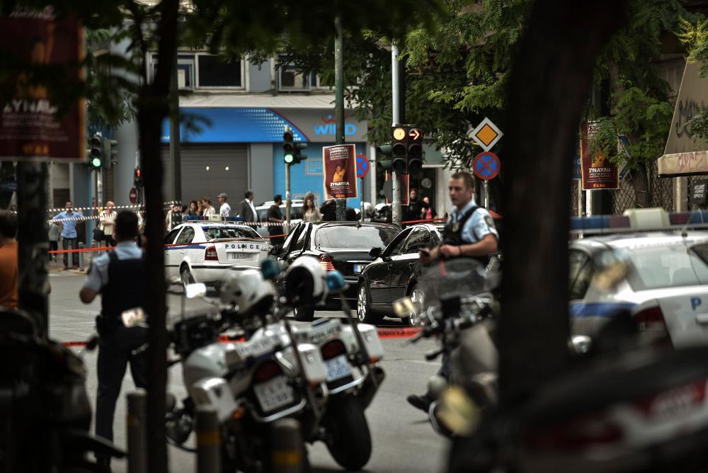Η περιοχή παραμένει αποκλεισμένη μέχρι την Ομόνοια, ενώ στο σημείο βρίσκονται ισχυρές αστυνομικές δυνάμεις. Το αυτοκίνητο του Λ. Παπαδήμου, καθώς και το συνοδευτικό, παραμένουν στο σημείο.
