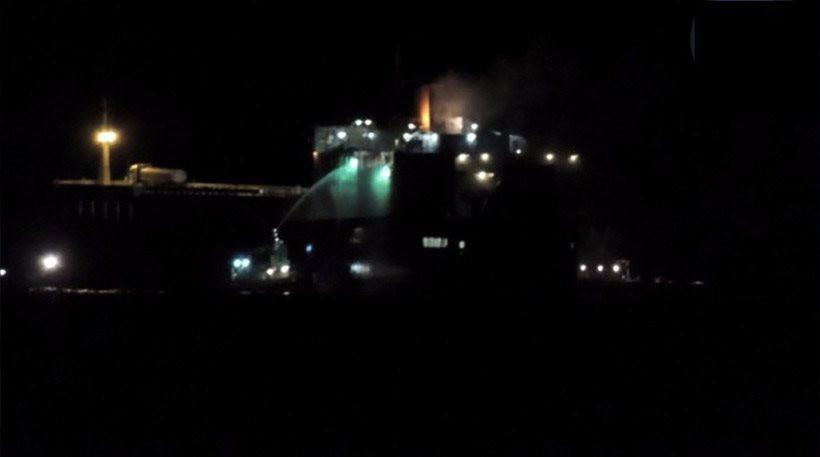 Από την παραλία του ενυδρείου στη Ρόδο διακρίνεται το σκάφος, το οποίο πριν απο λίγα λεπτά έσβησαν τα φώτα του, πιθανότητα εξαιτίας της πυρκαγιάς στο μηχανοστάσιο.