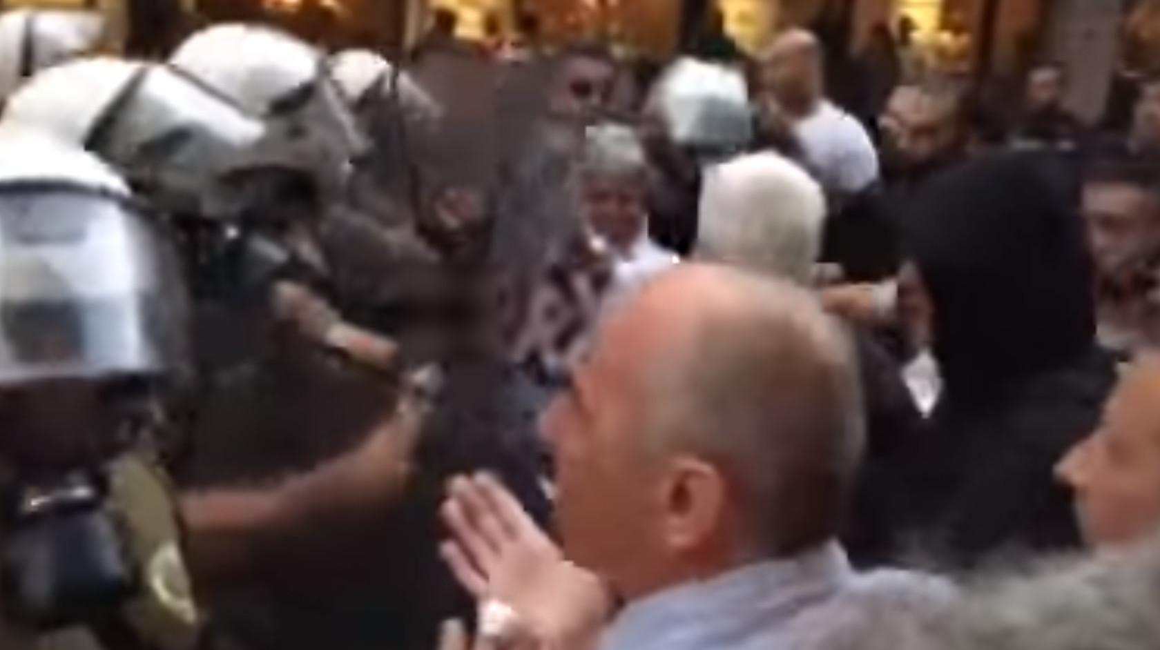 Στο σημείο έσπευσαν δυνάμεις των ΜΑΤ προκειμένου να απομακρύνουν τους διαδηλωτές. Τα μέλη του Ιερού Λόχου αρνήθηκαν να αποχωρήσουν και οι αστυνομικές δυνάμεις τους απομάκρυναν κάνοντας χρήση των ασπίδων τους.