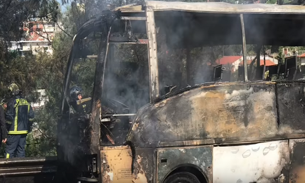 Η πυρκαγιά στο λεωφορείο με πινακίδες Σκοπίων προκλήθηκε κάτω από άγνωστες συνθήκες.