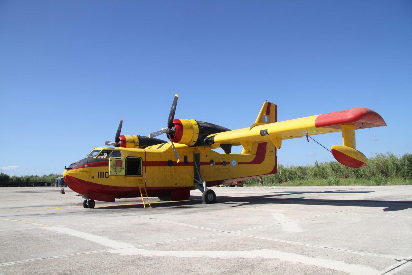 Από τα πιο «καινούργια» Canadair CL-415, ηλικίας 15 ετών (τα παραλάβαμε το 1999 και μέχρι και σήμερα είναι πιστοί σύμμαχοι στην μάχη της πυρόσβεσης στην επίγειες δυνάμεις της πυροσβεστικής), με δυνατότητα ρίψης 6 τόνων νερού, σε πτητική λειτουργία βρίσκονται πέντε από τα συνολικά 8 με τα περισσότερα από τα υπόλοιπα αεροπλάνα να βρίσκονται σε στάδιο συντήρησης και επισκευής.