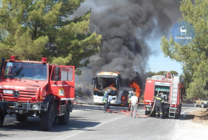 Φωτιά σε τουριστικό λεωφορείο, την ώρα που βρισκόταν σε κίνηση, γεμάτο με τουρίστες, εκδηλώθηκε το πρωί στη Ρόδο κοντά στο χωριό Αρχάγγελος χωρίς ευτυχώς να υπάρξει κανένα πρόβλημα χάρη στην ψυχραιμία που επέδειξε ο οδηγός του οχήματος.