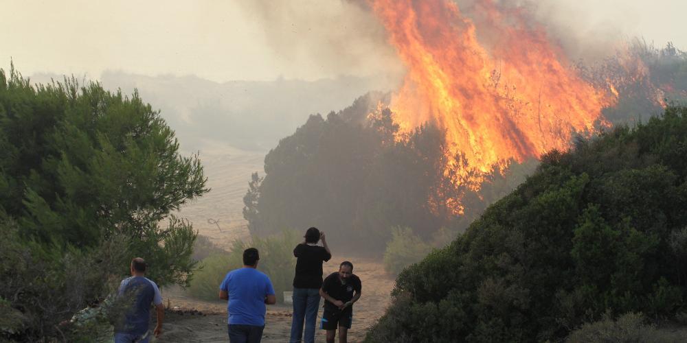Η φωτιά έλαβε γρήγορα διαστάσεις λόγω της πυκνής βλάστησης από κυπαρίσσια, πεύκα και έλατα και επεκτάθηκε, λόγω των ανέμων που πνέουν στην περιοχή.