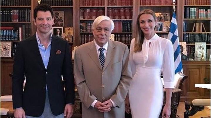 Το ζεύγος Ρουβά έβγαλε μία φωτογραφία με τον Πρόεδρο της Δημοκρατίας, την οποία ο Σάκης ανέβασε στον προσωπικό του λογαριασμό στο Instagram.
