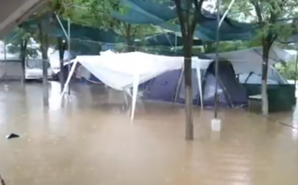 Κάμπινγκ στο δεύτερο πόδι του νομού μετατράπηκε σε λίμνη αφού τα νερά δε βρήκαν διέξοδο με αποτέλεσμα να πλημμυρίσει το τοπίο και οι κατασκηνωτές να αναζητούν τρόπο να σώσουν τα πράγματά τους.