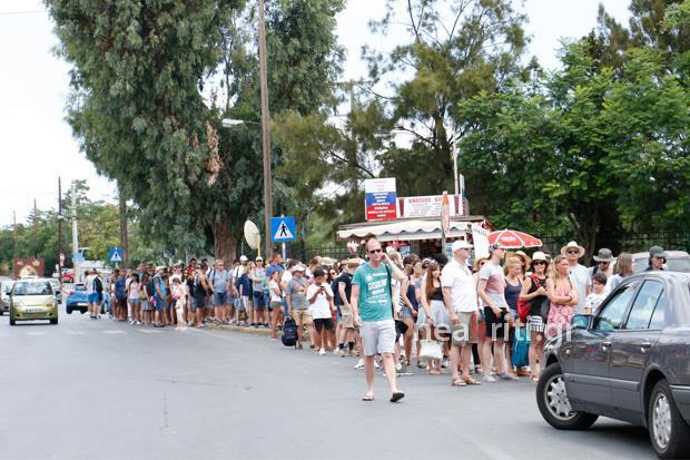 Όπως γράφει το cretalive.gr, οι εικόνες έξω από τον αρχαιολογικό χώρο είναι αποκαρδιωτικές, καθώς χιλιάδες τουρίστες σχηματίζουν ουρά εκατοντάδων μέτρων, περιμένοντας τη σειρά τους, μέχρι να αποκτήσουν πρόσβαση στο μνημείο.