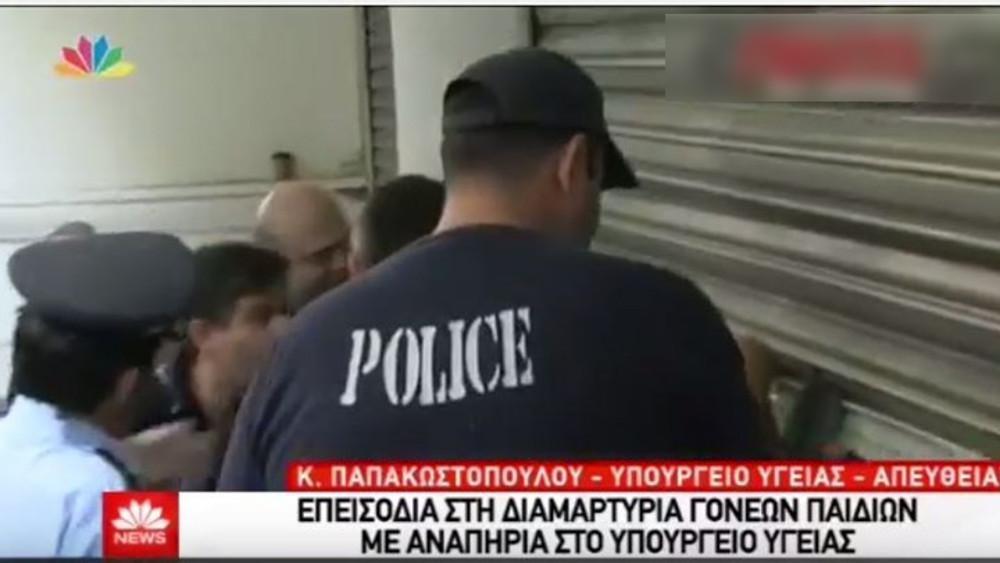 Όταν κατέβηκαν τα ρολά της εισόδου του υπουργείου, οι διαδηλωτές αντέδρασαν, τα ανέβασαν και στη συνέχεια μπήκαν στην είσοδο του υπουργείου, προχωρώντας σε συμβολική κατάληψη, ζητώντας συνάντηση με την ηγεσία του υπουργείου Υγείας, η οποία όμως έλειπε από το κτίριο.