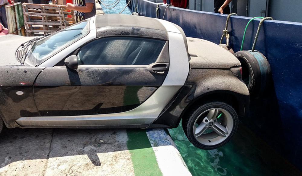Το αυτοκίνητο έμεινε το μισό στον αέρα κι αν δεν ήταν εκεί αγκυροβολημένο το σκάφος, το πιο πιθανό θα ήταν να είχε καταλήξει στη θάλασσα.