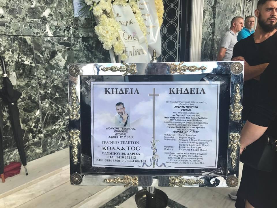 Η κηδεία του έγινε από τον Μητροπολιτικό Ναό του Αγίου Αχιλλίου, με τους συντετριμμένους συγγενείς, φίλους και γνωστούς του, να τον συνοδεύουν στην τελευταία του κατοικία. Λόγια παρηγοριάς δεν υπήρχαν αυτές τις δύσκολες ώρες.