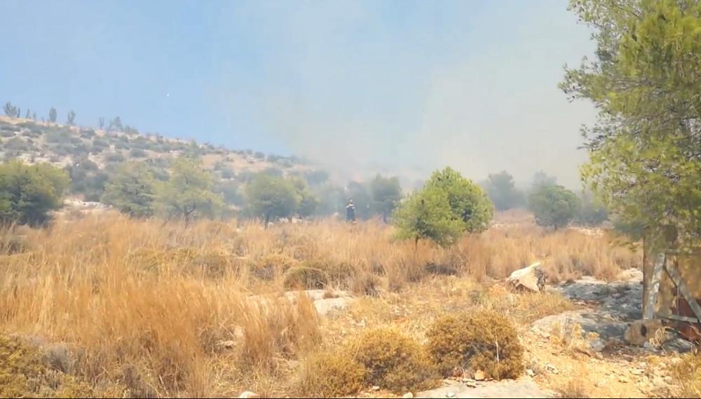 Ο άνεμος αυτή τη στιγμή είναι ισχυρός, ενώ στο σημείο όχι μόνο απειλούνται κατοικίες, αλλά και παρακείμενες κολώνες της ΔΕΗ.