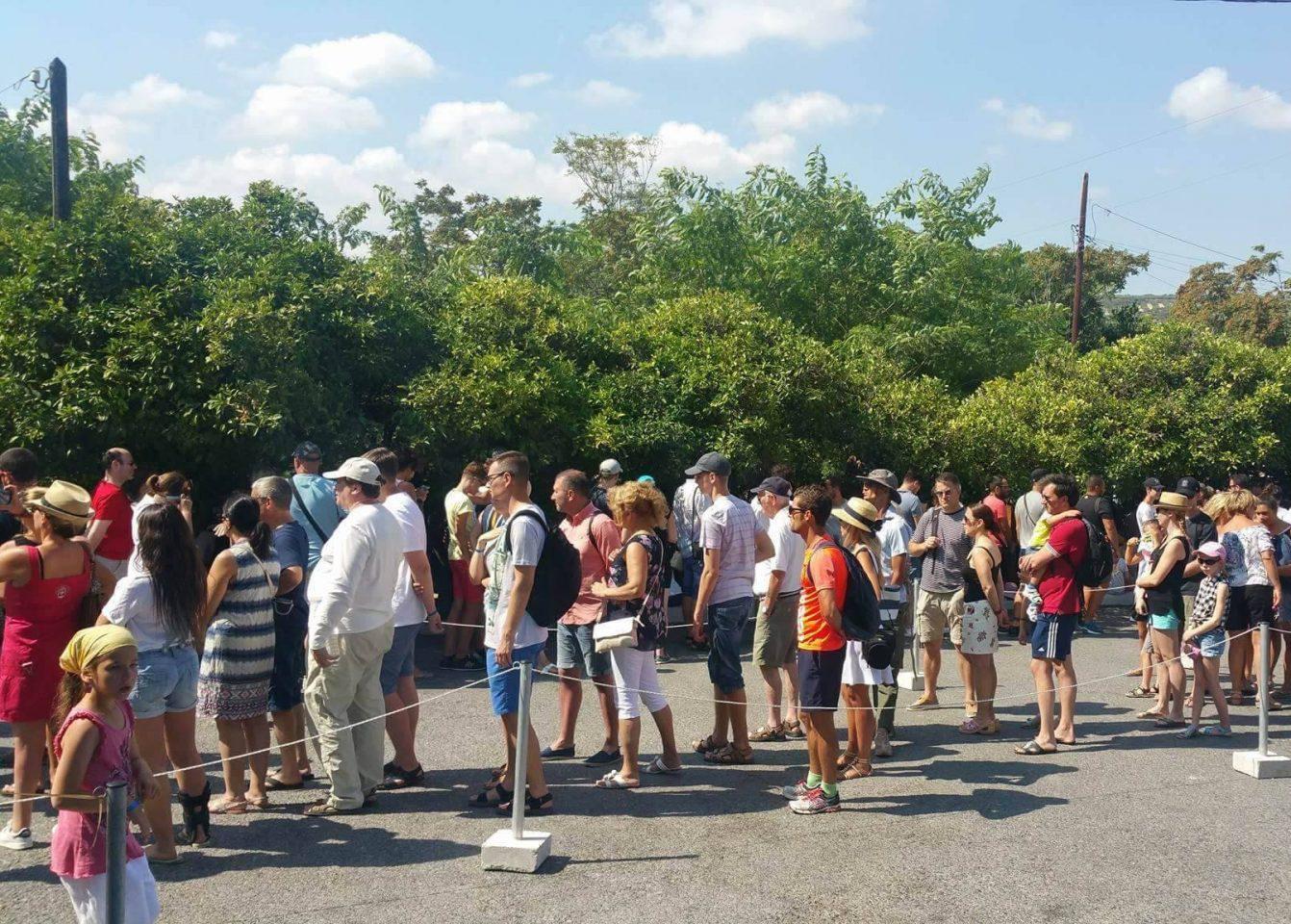 Μάλιστα όπως λένε ξεναγοί με μεγάλη εμπειρία, τέτοια ουρά έχουν να δουν εδώ και δεκαετίες. Φυσικά δεν λείπει η ταλαιπωρία, αφού οι επισκέπτες είναι αναγκασμένοι να περιμένουν κάτω από τον ήλιο μέχρι να μπουν στον αρχαιολογικό χώρο.