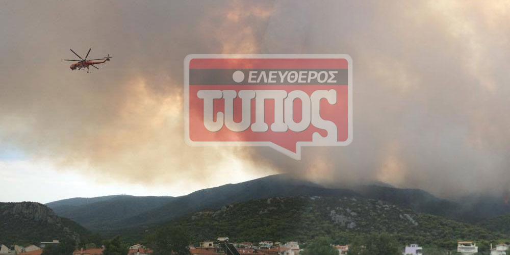 Στο σημείο επιχειρούν αυτήν την ώρα 70 πυροσβέστες, 33 οχήματα, 6 αεροσκάφη και 5 ελικόπτερα.
