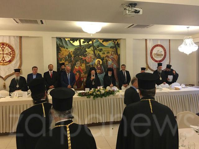Στο δείπνο στο Τσατσαρωνάκειο Πολιτιστικό Κέντρο παρευρέθηκαν εκτός του Πατριάρχη Βαρθολομαίου, ο αρχιεπίσκοπος Αμερικής Δημήτριος, ο αρχιεπίσκοπος Κρήτης Ειρηναίος, ο Κισάμου και Σελίνου Αμφιλόχιος, ο υφυπουργός εξωτερικών Γιάννης Αμανατίδης, ο επικεφαλής του Ποταμιού Σταύρος Θεοδωράκης, ο περιφερειάρχης Κρήτης Σταύρος Αρναουτάκης, οι δημοτικές αρχές καθώς και επιχειρηματίες του νησιού.