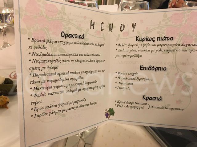 Το μενού περιελάμβανε παραδοσιακές νοστιμιές της Κρήτης, όπως αγριόχορτα, μυζήθρα, κρητικά πιτάκια αλλά και άφθονο ρακόμελο.