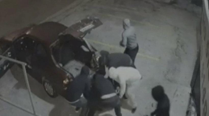 Όπως φαίνεται στο βίντεο που μεταδόθηκε στο δελτίο ειδήσεων του ΣΚΑΪ, στην «επιχείρηση» συμμετέχουν πέντε άτομα που περιμένουν μέχρι ο συνεργός τους που βρίσκεται στο τιμόνι ενός αυτοκινήτου να γκρεμίσει την είσοδο της επιχειρήσης στην οδό Ηρούς.