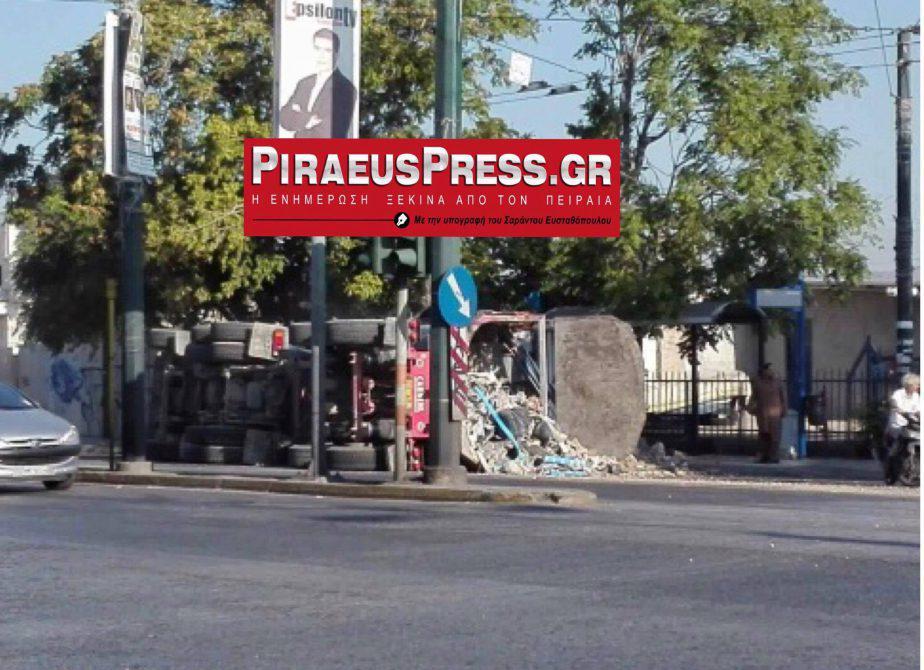 Όπως φαίνεται από την φωτογραφία, το φορτηγό τούμπαρε στη δεξιά λωρίδα της Πέτρου Ράλλη.
