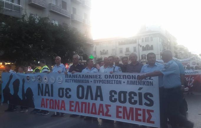 .Είχαν προηγηθεί νωρίτερα το απόγευμα προσυγκεντρώσεις από τις Ομοσπονδίες των Εργαζομένων στα Σώματα Ασφαλείας στο άγαλμα του Βενιζέλου.