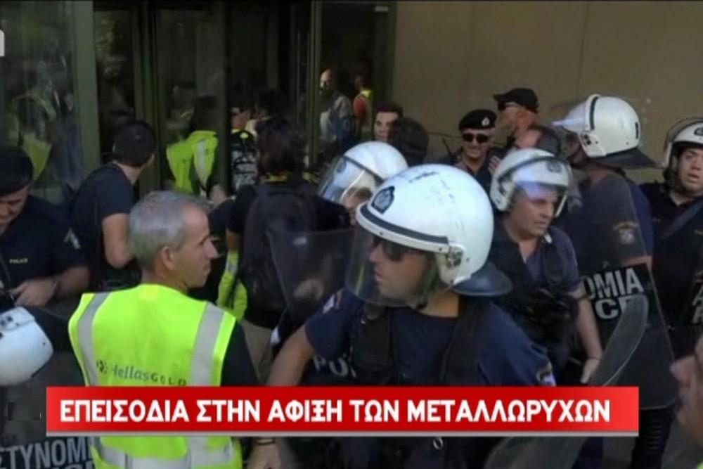 Οι εργαζόμενοι διαμαρτύρονται για τις καθυστερήσεις από την πλευρά της κυβέρνησης στην έκδοση αδειών για τα μεταλλεία στη Χαλκιδική που οδήγησαν την καναδική εταιρεία Eldorado να ανακοινώσει την πρόθεσή της να αναστείλει την επένδυσή της στην Ελλάδα.
