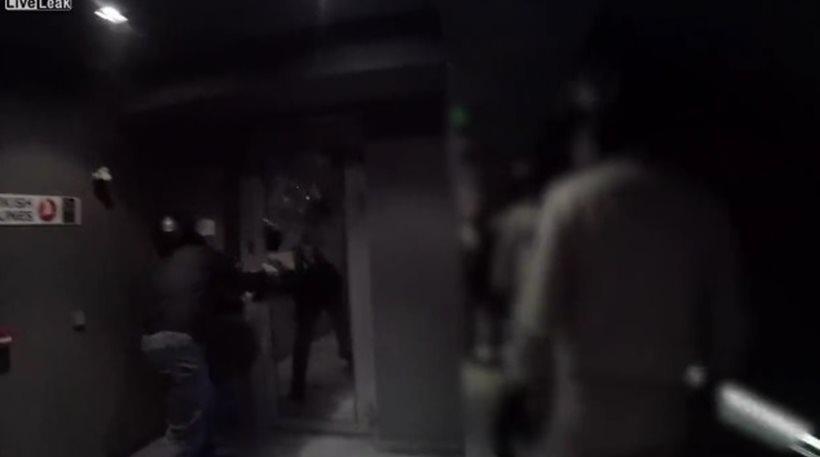 Στο βίντεο φαίνονται τουλάχιστον τρία μέλη της ομάδας να προκαλούν φθορές στην είσοδο των γραφείων στον τρίτο όροφο κτηρίου στη λεωφόρο Ποσειδώνος 77 στον Άλιμο.