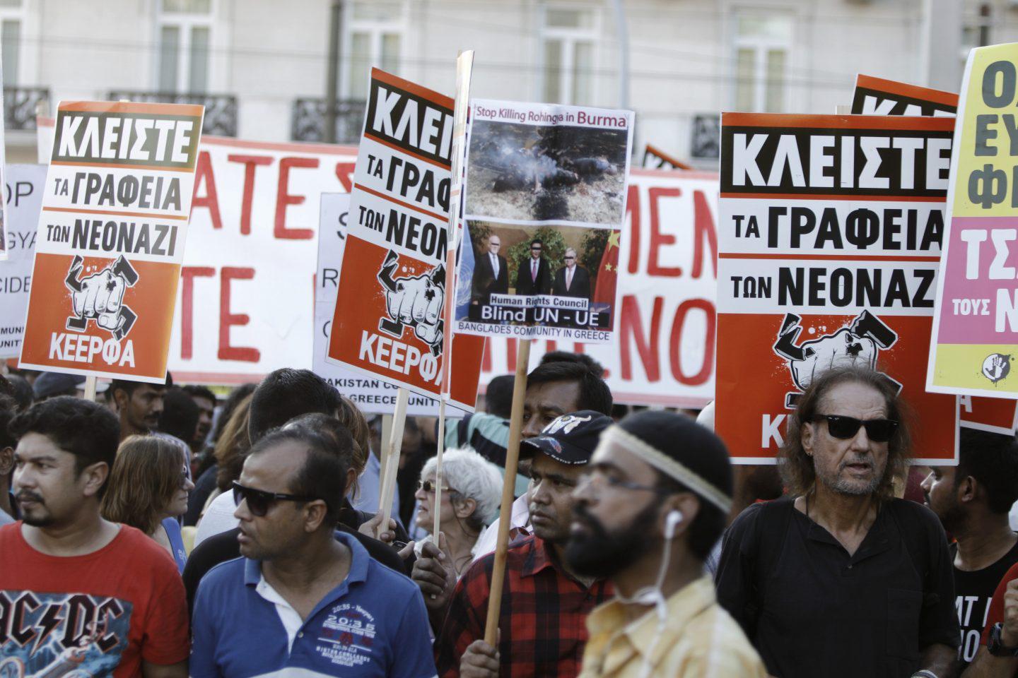 «Βγήκαμε χιλιάδες στους δρόμους για να διαδηλώσουμε κατά της Χρυσής Αυγής και να ζητήσουμε να κλείσουν τα γραφεία της σε όλη την Ελλάδα, που αποτελούν ορμητήριο των νεοναζί. Συμπληρώνονται 4 χρόνια από τη δολοφονία του Παύλου Φύσσα. Πρέπει να ολοκληρωθεί η δίκη της Χρυσής Αυγής και να πάνε φυλακή οι νεοναζί» ανέφερε ο επικεφαλής της ΚΕΕΡΦΑ Πέτρος Κωνσταντίνου και επισήμανε: «Θέλουμε να κυριαρχήσει η ελπίδα και όχι ο τρόμος και η απελπισία».