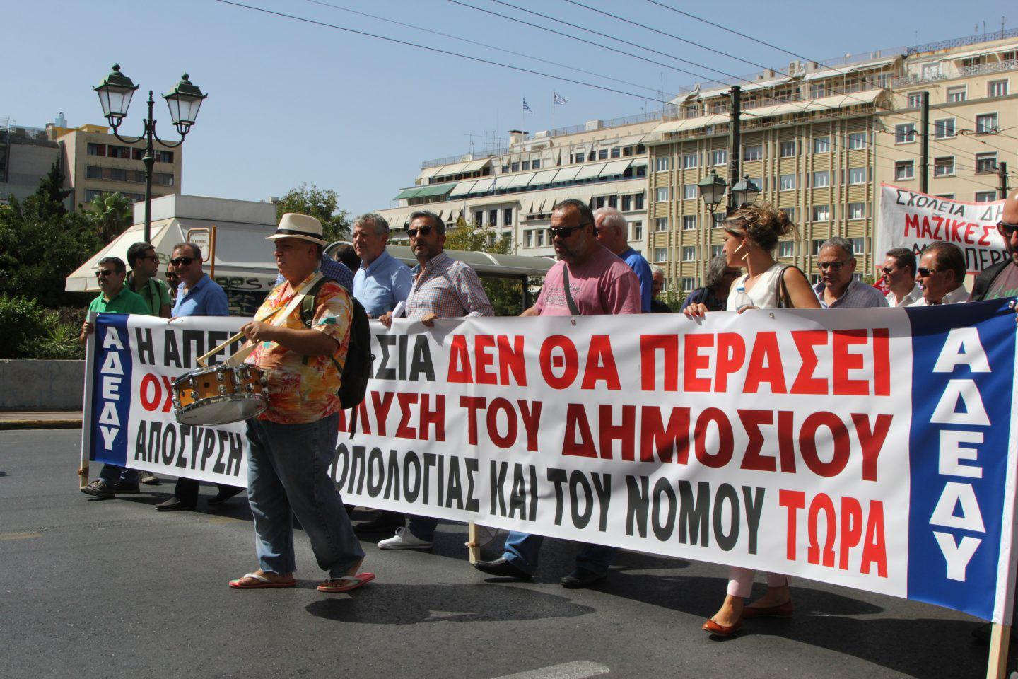 «Η Υπουργός Διοικητικής Ανασυγκρότησης, Όλγα Γεροβασίλη, προωθεί για ψήφιση στην Ολομέλεια της Βουλής, την Τρίτη, 19 Σεπτεμβρίου, την εκβιαστική, διασπαστική, αντισυνταγματική και απεργοσπαστική τροπολογία της για την αξιολόγηση στο Δημόσιο. Με αυτήν την τροπολογία η Κυβέρνηση προσπαθεί να «απαντήσει» στην καθολική συμμετοχή των εργαζομένων στην απεργία – αποχή που έχει κηρύξει η Α.Δ.Ε.Δ.Υ. από την μνημονιακή υποχρέωση για «αξιολόγηση». Με την τροπολογία αυτή, εκβιάζει τους εργαζόμενους και όλους όσοι κατέχουν θέσεις ευθύνης. Επιχειρεί να αποκρύψει την ήττα της και το «ναυάγιο» που υπέστη στο θέμα αυτό και να στείλει το μήνυμα ότι έτσι μπορεί πάρει τη ρεβάνς», αναφέρει χαρακτηριστικά σε ανακοίνωσή της η ΑΔΕΔΥ και προσθέτει: