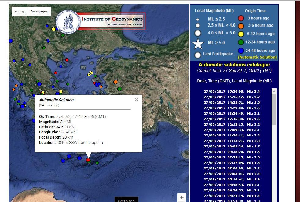 Σύμφωνα με την προκαταρκτική εξέταση του Γεωδυναμικού Ινστιτούτου ο σεισμός έγινε 48 χιλιόμετρα νότια της Ιεράπετρας και είχε εστιακό βάθος 20 χιλιόμετρα.