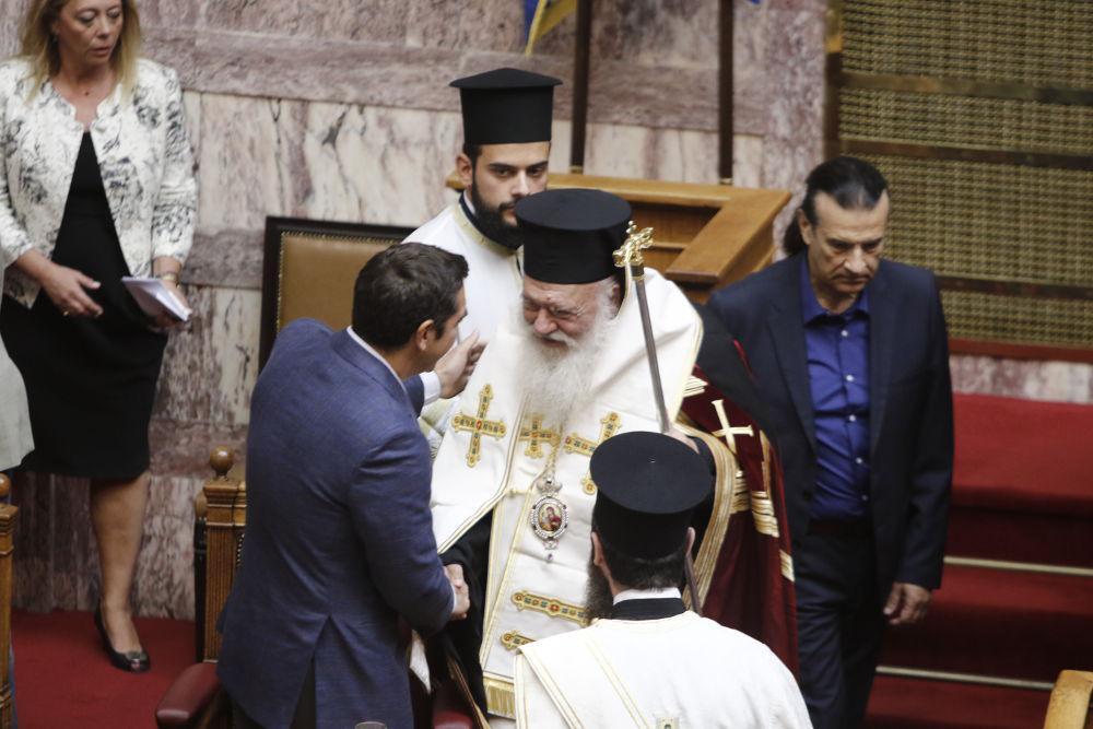 Από εκεί και πέρα ευχήθηκε από την ολομέλεια καλές και πολλές υπομονές στους βουλευτές κατά τον αγιασμό για την νέα κοινοβουλευτική σύνοδο. Ο κ. Ιερώνυμος χοροστάτησε επικεφαλής του σώματός της ιεραρχίας το οποίο ήρθε στη Βουλή για να τελέσει τον καθιερωμένο αγιασμό: «Να έχετε σύνεση να εργάζεστε για το καλό της πατρίδας μας και μάλιστα όχι μόνο στα πλαίσια της ελληνικής πολιτείας αλλά να δούμε και λίγο ψηλότερα στο έθνος μας» ανέφερε ο αρχιεπίσκοπος και ευχήθηκε στους βουλευτές υγεία, φωτισμό και σύνεση.