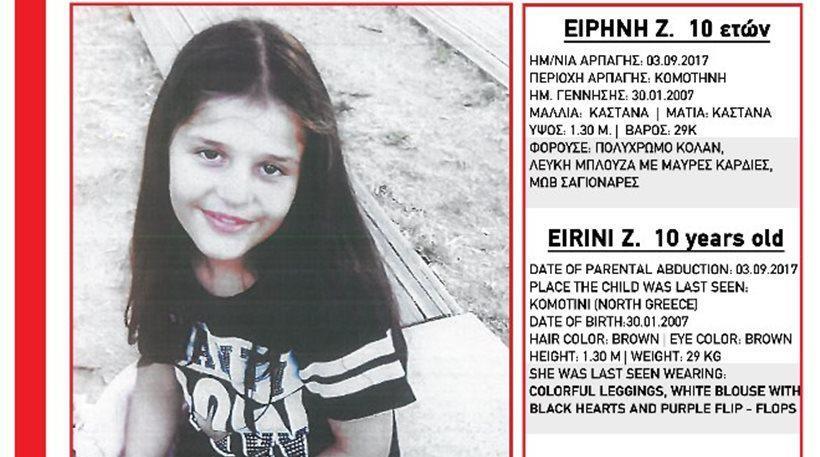 Η 10χρονη Ειρήνη είχε απαχθεί από τον πατέρα της από το σπίτι στο οποίο ζούσε με την μητέρα της στην Κομοτηνή. Το κοριτσάκι εντοπίστηκε σε διαμέρισμα του 5ου ορόφου σε πολυκατοικία επί της οδού Αθηνάς 43-49 στην Καλλιθέα.