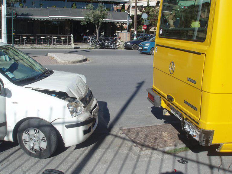 Το τροχαίο ατύχημα συνέβη στην οδό Ηρώων Πολυτεχνείου στο ύψος της 1ης Στρατιάς όταν το Ι.Χ. προσέκρουσε στο πίσω μέρος του σχολικού λεωφορείου. Από την σύγκρουση των δύο οχημάτων προκλήθηκαν μόνο υλικές ζημιές, ενώ κανένας από τους μαθητές που επέβαιναν στο σχολικό, δεν έπαθε το παραμικρό.