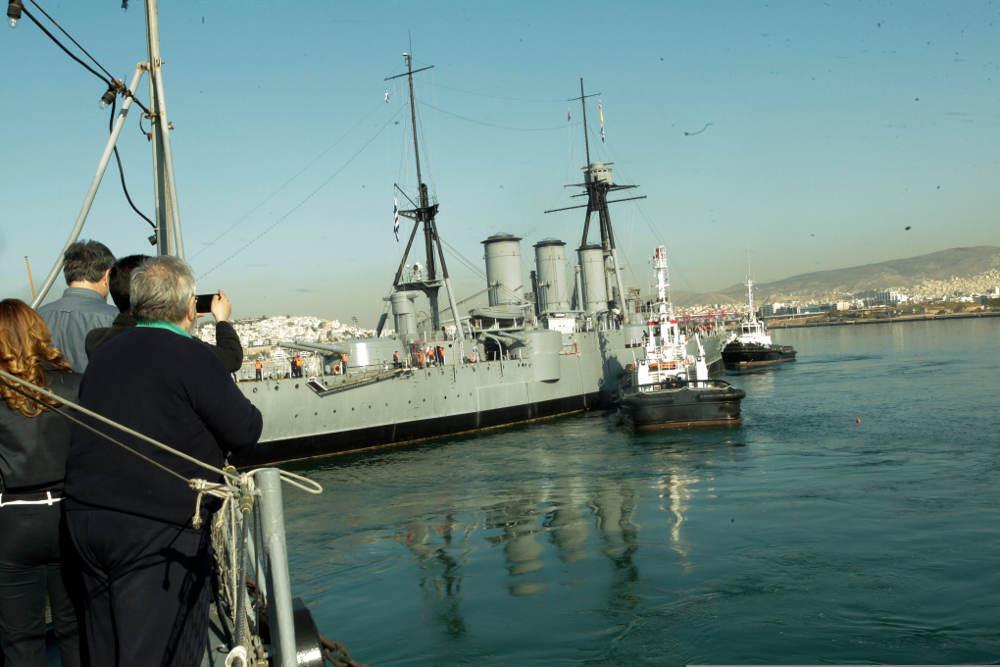 Από την πλευρά τους, ο περιφερειάρχης Κεντρικής Μακεδονίας, Απόστολος Τζιτζικώστας και ο δήμαρχος Θεσσαλονίκης, Γιάννης Μπουτάρης, τόνισαν τη σημασία του θρυλικού θωρηκτού στη Θεσσαλονίκη, δίνοντας συγχαρητήρια στο Πολεμικό Ναυτικό και το υπουργείο Εθνικής Άμυνας για την πρωτοβουλία.