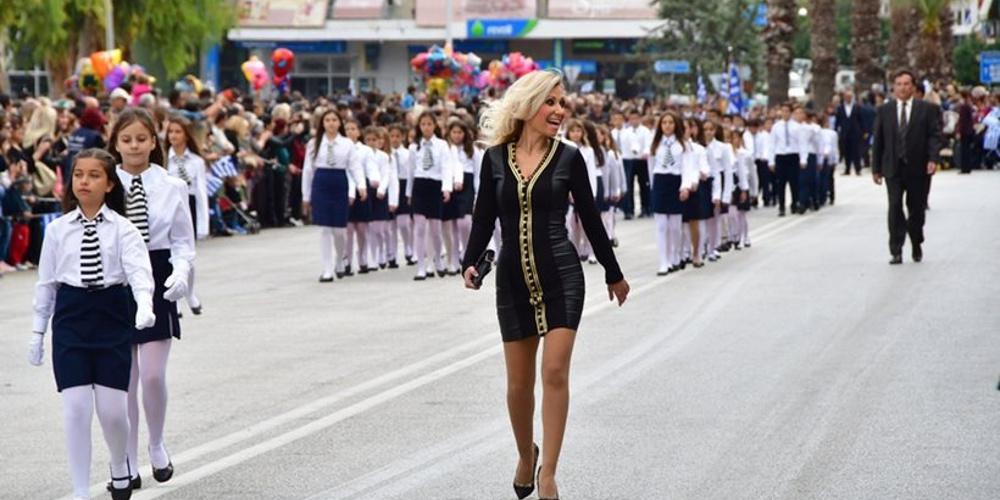 H εντυπωσιακή εκπαιδευτικός συνόδευσε τους μαθητές στην παρέλαση, περπατώντας με… αέρα μοντέλου, σαν σε πασαρέλα μόδας.