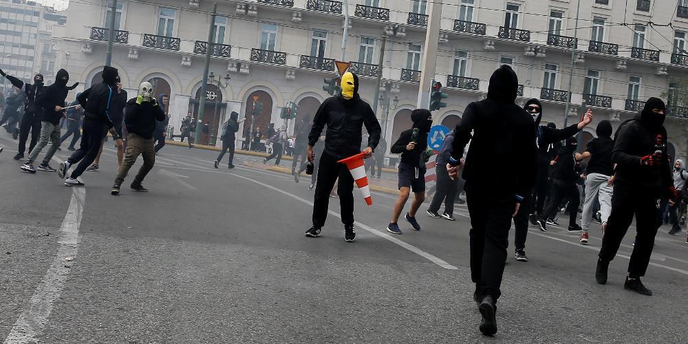 Οι νεαροί έριξαν πέτρες και βόμβες μολότοφ στα ΜΑΤ στην πλατεία Συντάγματος, οι οποίοι απάντησαν με δακρυγόνα και ρίψη χημικών, ενώ στη συνέχεια κατευθύνθηκαν στα Προπύλαια όπου συνεχίστηκαν τα επεισόδια. Επίσης οι κουκουλοφόροι έσπασαν κατάστημα των «Μικέλ» στην οδό Πανεπιστημίου 58 και ένα ΑΤΜ της Eurobank στην Κοραή.