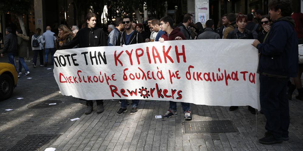 «Η Ένωση Εμποροϋπαλλήλων καλεί τους εργαζόμενους να μην δεχθούν καμία Κυριακή να ανοίγουν τα καταστήματα, να μη δεχθούν να δουλεύουν σαν σύγχρονοι σκλάβοι», δήλωσε η πρόεδρος της Ένωσης, Γαρυφαλλιά Καλαμαρά. «Καλούμε τους εργαζόμενους να αντικρούσουν αυτή την επίθεση, μπροστά και στα νέα μέτρα που φέρνει η κυβέρνηση, για να χτυπήσουν και το δικαίωμα της οργανωμένης συνδικαλιστικής δράσης των εργαζομένων και το δικαίωμα της απεργίας», ανέφερε.