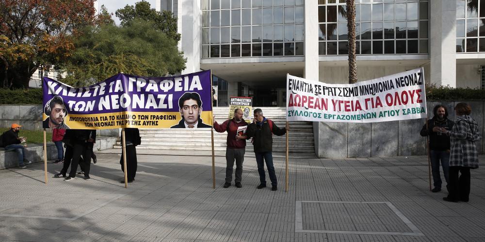 Η συγκέντρωση οργανώθηκε με αφορμή τη σημερινή εκδίκαση της υπόθεσης για την επίθεση Λάζαρη, με κατηγορούμενο τον Χρ. Ζέρβα, συνεργάτη του επικεφαλής της ΧΑ, Ν. Μιχαλολιάκου.