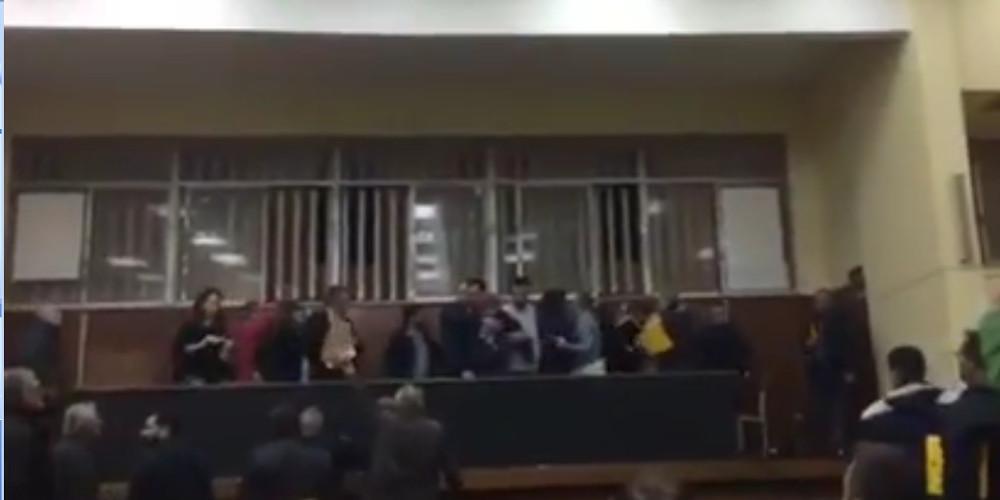 Μάλιστα μέλη του ΠΑΜΕ (Δημήτρης Αγγελόπουλος κ.α.) πήραν τα μικρόφωνα και η συνέλευση έχει διακοπή.