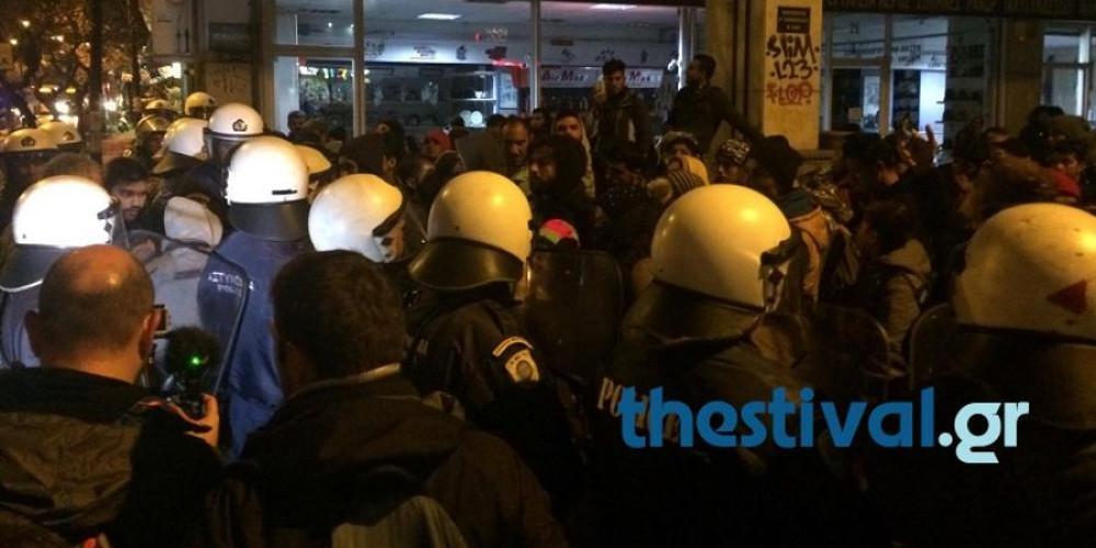 Ομάδα 300 περίπου ατόμων κινήθηκε νωρίτερα από την πλατεία Αριστοτέλους προς τον Σιδηροδρομικό σταθμό, ωστόσο εκεί συνάντησε φραγμό της Αστυνομίας με αποτέλεσμα να επικρατήσει ένταση για λίγα λεπτά.