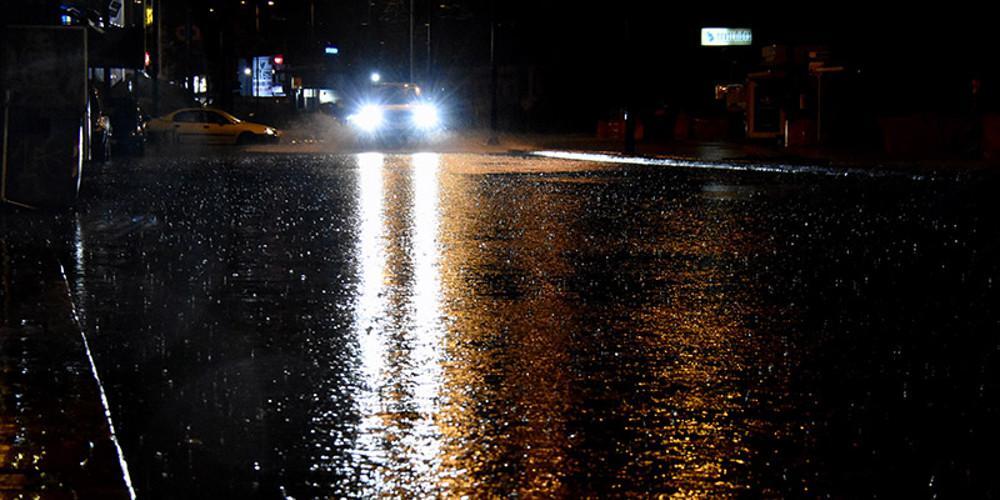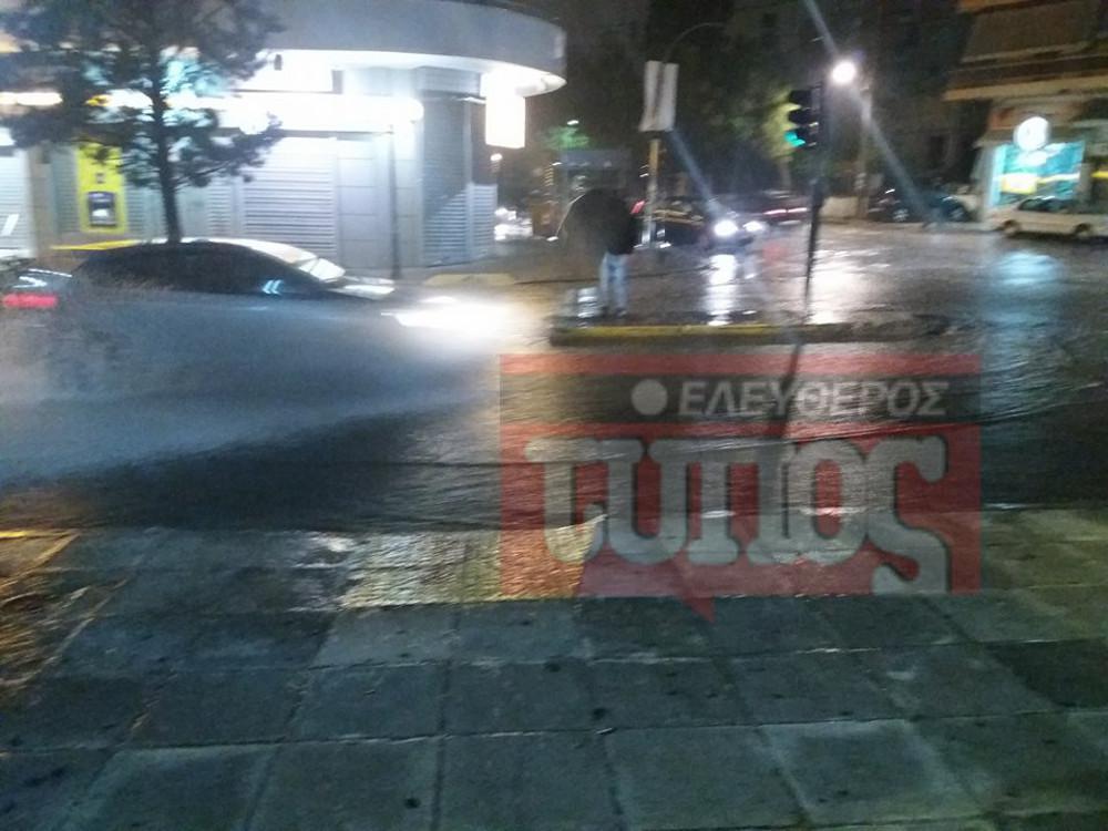 Λίγο μετά τις δέκα το βράδυ ξέσπασε πολύ δυνατή βροχή με συνέπεια οι δρόμοι να μετατραπούν σε ποτάμια.