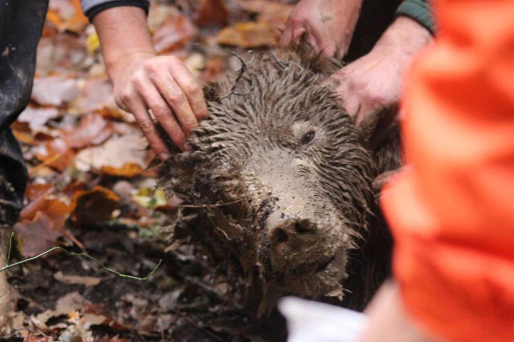 Η επιχείρηση πραγματοποιήθηκε το πρωί της Πέμπτης από την μεικτή Ομάδα Άμεσης Επέμβασης που συστάθηκε από στελέχη όλων των παραπάνω φορέων και η ολοκλήρωση του απεγκλωβισμού της αρκούδας ήταν δύσκολη καθώς στο σημείο που είχε πιαστεί υπήρχε πολλή λάσπη λόγω της έντονης βροχόπτωσης που είχε προηγηθεί. Η αρκούδα, καθώς ήταν τουλάχιστον 24 ώρες εγκλωβισμένη στην παγίδα, ήταν εμφανώς αφυδατωμένη και στρεσαρισμένη, και εάν είχε μείνει λίγες ώρες παραπάνω είναι σχεδόν βέβαιο ότι το ζώο θα κατέληγε από εξάντληση η/και πνιγμό μεσα σε ένα κρατήρα λάσπης.