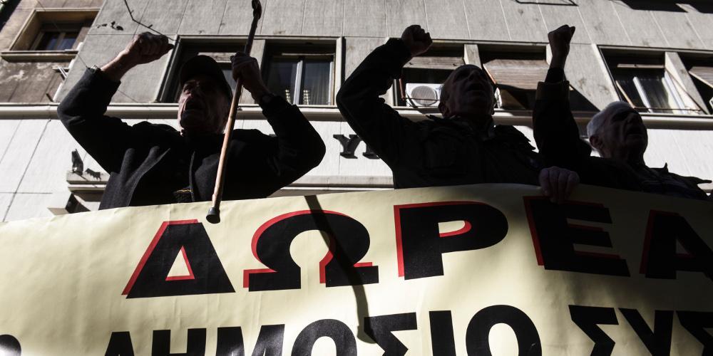 Αυτή την ώρα είναι έξω από το γραφείο του υπουργού κια ζητούν επιμόνως συνάντηση μαζί του. Οι συνταξιούχοι ζήτησαν να μπει ένα τέλος στις περικοπές των συντάξεών τους και απαίτησαν δωρεάν υγεία και ιατροφαρμακευτική περίθαλψη για όλους.