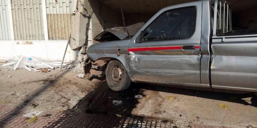 Το αγροτικό πέρασε ανάμεσα από δυο κολόνες και έπεσε πάνω στην τσιμεντένια κολόνα ενός σπιτιού. Κάτοικοι και διερχόμενοι οδηγοί έτρεξαν αμέσως να βοηθήσουν το ηλικιωμένο ζευγάρι.