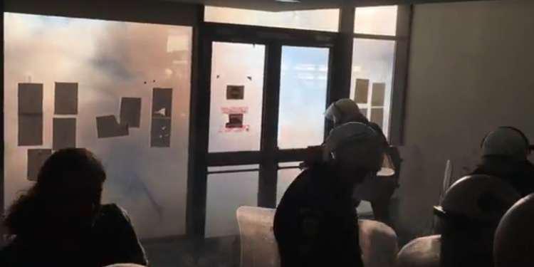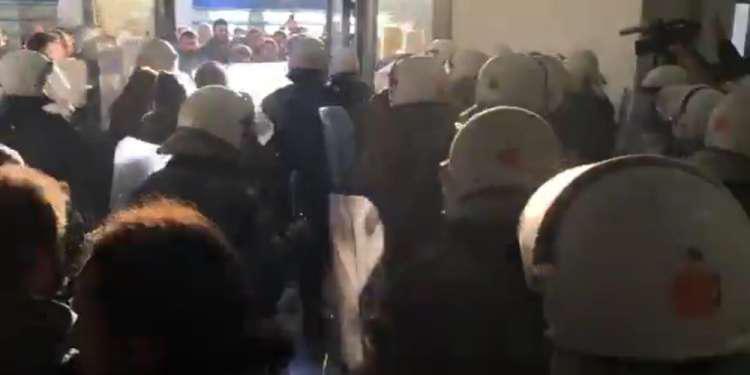 Νωρίτερα, σημειώθηκαν επεισόδια εντός του Ειρηνοδικείου ανάμεσα στις αστυνομικές δυνάμεις και συλλογικότητες που διαμαρτύρονται για τους πλειστηριασμούς που θα διενεργηθούν.
