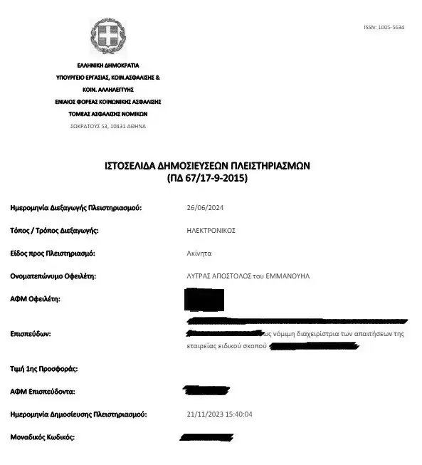 - Αναγκαστική Κατάσχεση κατά Λύτρα Απόστολου υπέρ Εταιρείας για ποσό 450.000 ευρώ με ημερομηνία καταχώρησης 14.11.2023.