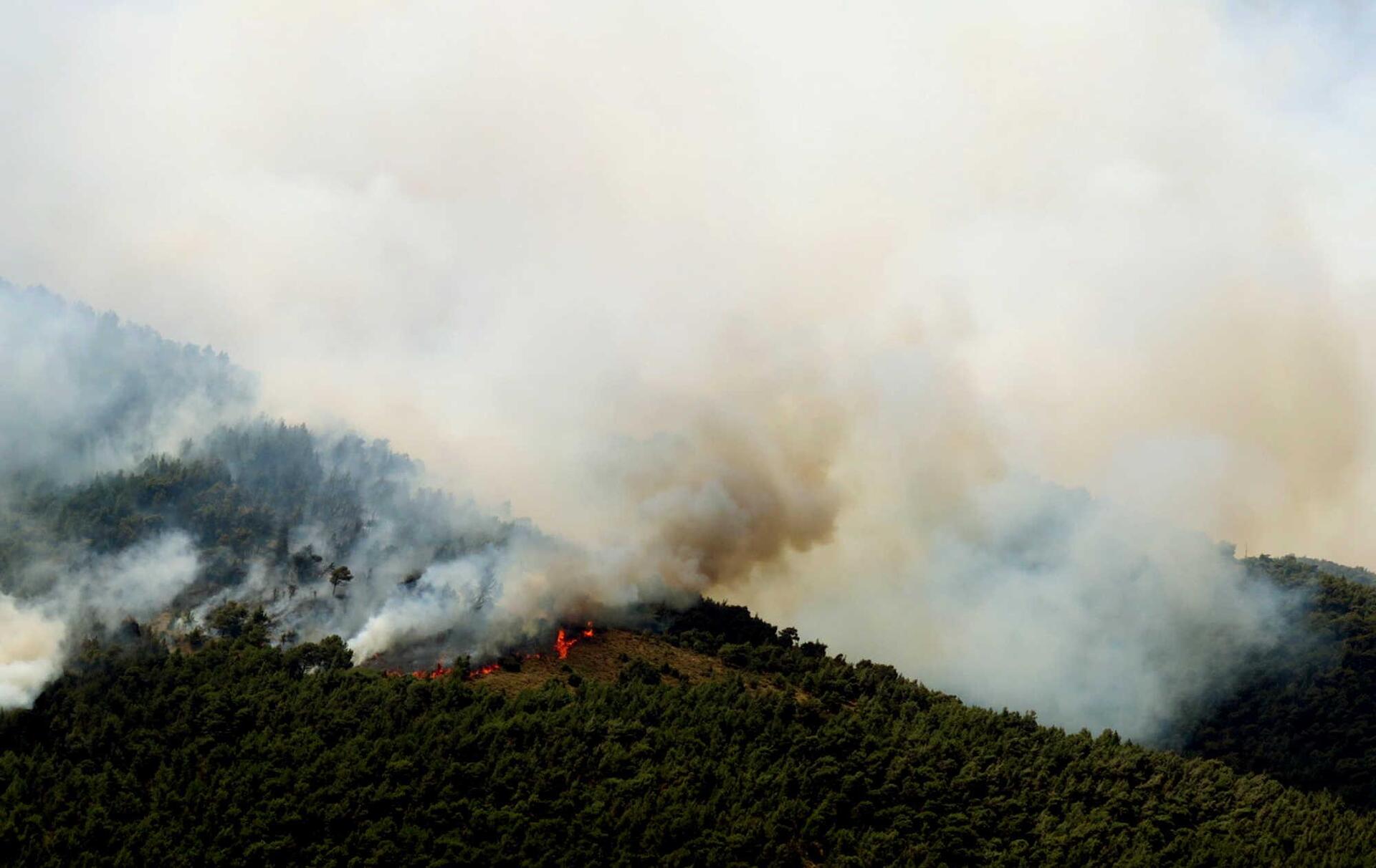 Σύμφωνα με την τελευταία ενημέρωση από την Πυροσβεστική Υπηρεσία, η πυρκαγιά, η οποία έχει μεγάλη περίμετρο, έχει διασπαστεί σε δύο μεγάλα μέτωπα, ένα προς νοτιοδυτικά και συγκεκριμένα προς την πλευρά της Μαγούλας και ένα με ανατολική κατεύθυνση, προς την πλευρά της Πάρνηθας.