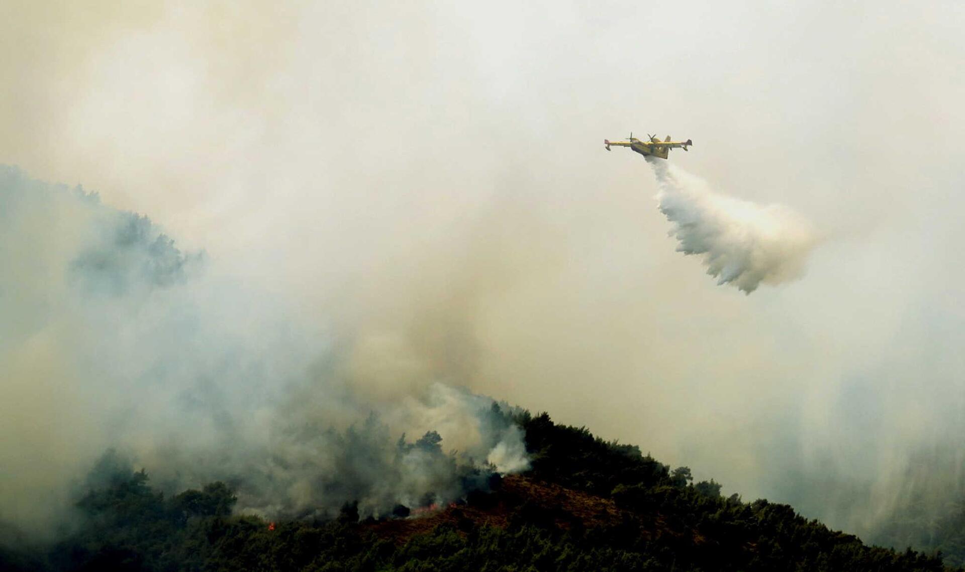 Αποκλειστική φωτογραφία με το καναντέρ που κατέπεσε στα Σκούρτα Βοιωτίας, όταν εναέριες δυνάμεις της πυροσβεστικής προσπαθούσαν να σβήσουν την φωτιά, εξασφάλισε ο Ελεύθερος Τύπος.