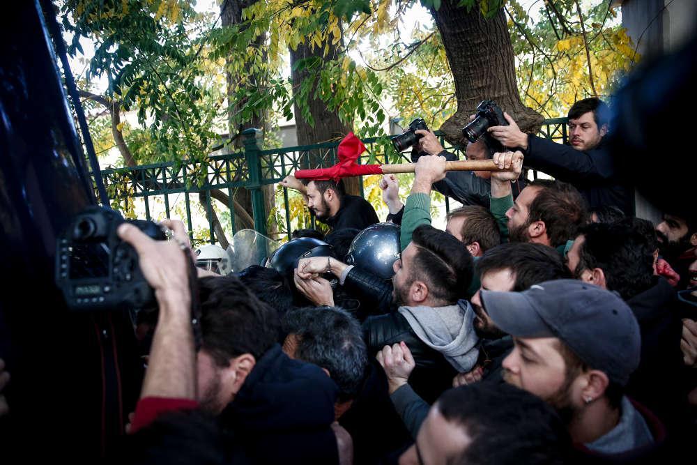 Οι διαδηλωτές συγκρούστηκαν με δυνάμεις της αστυνομίας που βρισκόταν στο κτίριο με αποτέλεσμα να τραυματιστεί ένας αστυνομικός αλλά και διαδηλωτές.