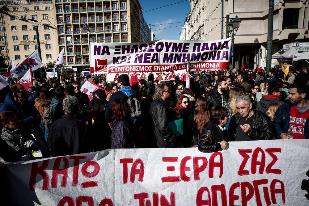 Οταν η πορεία του ΠΑΜΕ έφτασε στην Ηρώδου Αττικού και μέλη της προσπάθησαν να περάσουν και να κατευθυνθούν προς το Μέγαρο Μαξίμου, άνδρες των ΜΑΤ τους σταμάτησαν κάνοντας χρήση χημικών.