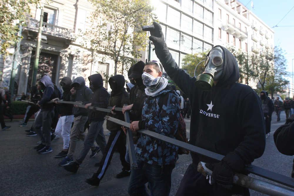 Ανενόχλητοι κουκουλοφόροι εκμεταλλεύτηκαν το μαθητικό συλλαλητήριο για την επέτειο από τη δολοφονία του Αλέξανδρου Γρηγορόπουλου, αλλά και την απουσία της αστυνομίας, και διέλυσαν ό,τι βρήκαν στον δρόμο τους στην Αθήνα.
